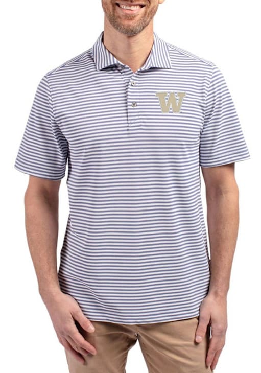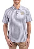 Mens Washington Huskies Pink Cutter and Buck Virtue Eco Pique Stripe Short Sleeve Polo Shirt