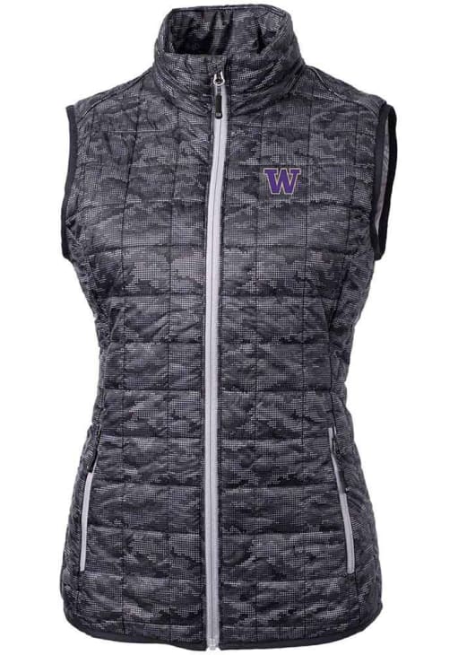 Gear up for the upcoming tailgate with the ultimate Washington Huskies Womens Black Vest. Stay warm in this Washington Rainier PrimaLoft Printed Puffer Sleeveless Jacket, which features a insulation that is crafted from 70% recycled plastic bottle polyester.