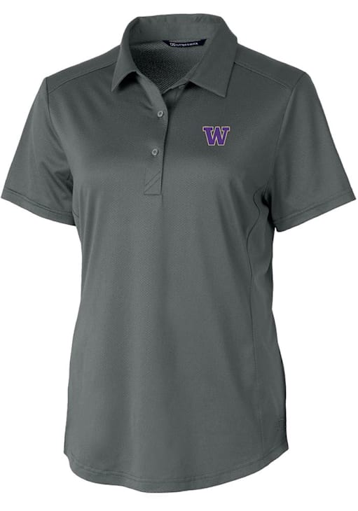 Enhance your professional style with this striking Womens Grey Short Sleeve Polo Shirt! Showcase your team pride among colleagues with this exceptional Washington Grey Prospect Textured Short Sleeve Polo. Stand out and make a statement in this Washington Huskies Short Sleeve Polo, featuring a high quality, modern, ultra-fine pique that adds a touch of distinction to your look.