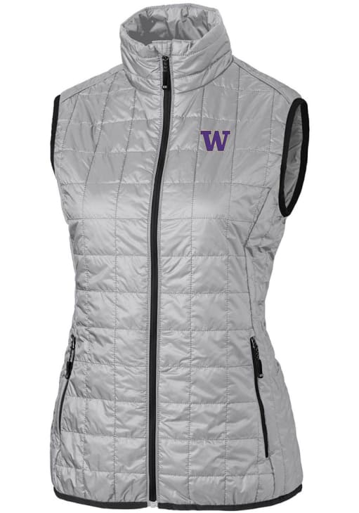 Gear up for the upcoming tailgate with the ultimate Washington Huskies Womens Grey Vest. Stay warm in this Washington Rainier PrimaLoft Puffer Sleeveless Jacket, which features a insulation crafted from 70% recycled polyester.