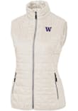 Gear up for the upcoming tailgate with the ultimate Washington Huskies Womens White Vest. Stay warm in this Washington Rainier PrimaLoft Puffer Sleeveless Jacket, which features a insulation crafted from 70% recycled polyester.