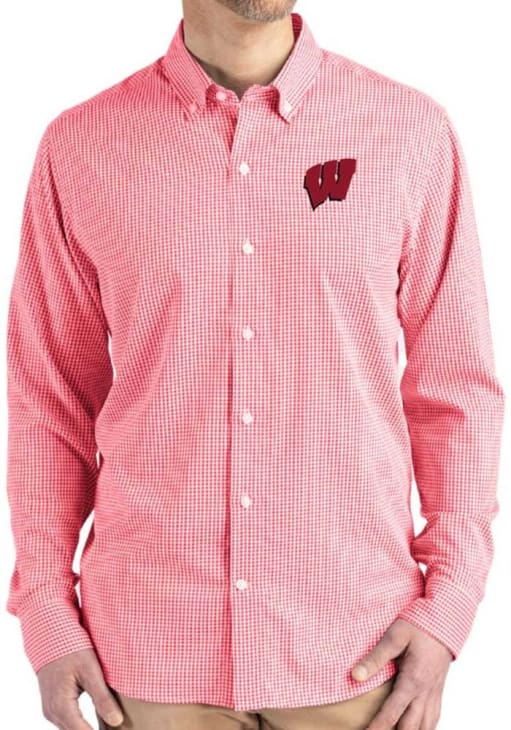 Show your Badgers spirit show in the office with this Wisconsin Badgers Dress Shirt! Embrace your team spirit and showcase it proudly in this Mens Red Gingham LS Woven Long Sleeve Long Sleeve Button Down Shirt. This Long Sleeve Dress Shirt features a team logo.