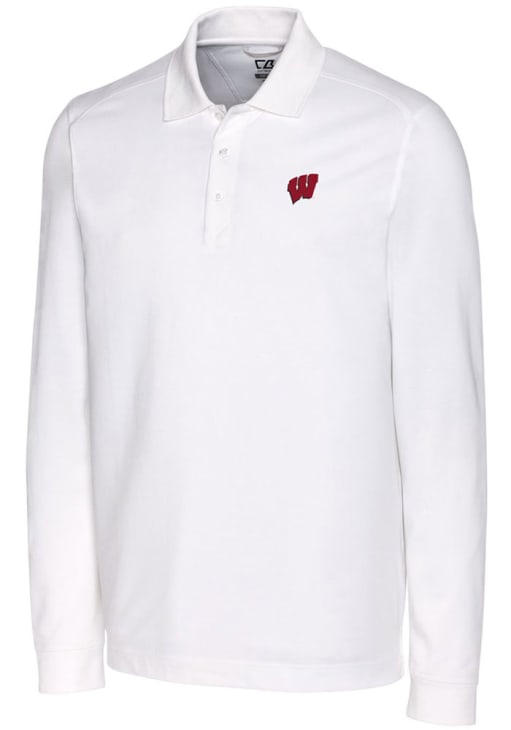 Make a bold statement in this Wisconsin Badgers Cutter and Buck Mens White Advantage Pique Long Sleeve Long Sleeve Polo! This Polo features a high quality tri-blend pique that combines super soft cotton with DryTec polyester and spandex, making this Mens Long Sleeve Polo Shirt perfect for any Wisconsin fan who wants to display their spirit in any setting.
