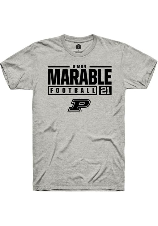D’Mon Marable Ash Purdue Boilermakers NIL Stacked Box Short Sleeve T Shirt