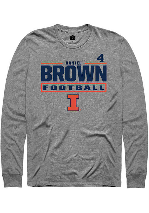 Show your Illinois Fighting Illini spirit in this Illinois Graphite T Shirt! This Illinois NIL Stacked Box Long Sleeve T Shirt makes a great layer for cooler nights cheering on the Fighting Illini. Featuring a custom graphic with player's name and number, this Illinois Fighting Illini Long Sleeve Tee is an essential addition for every fan. Go, Illini, Go!