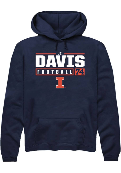 Jc Davis Rally Mens Navy Blue Illinois Fighting Illini Football NIL Stacked Box Hooded Sweatshirt