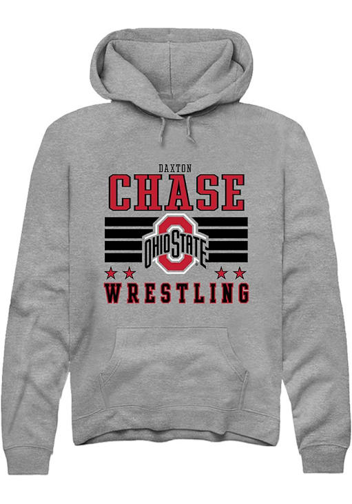 Daxton Chase Rally Mens Grey Ohio State Buckeyes NIL Striped Hooded Sweatshirt
