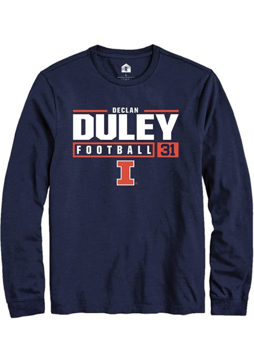 Show your Illinois Fighting Illini spirit in this Illinois Navy Blue T Shirt! This Illinois NIL Stacked Box Long Sleeve T Shirt makes a great layer for cooler nights cheering on the Fighting Illini. Featuring a custom graphic with player's name and number, this Illinois Fighting Illini Long Sleeve Tee is an essential addition for every fan. Go, Illini, Go!