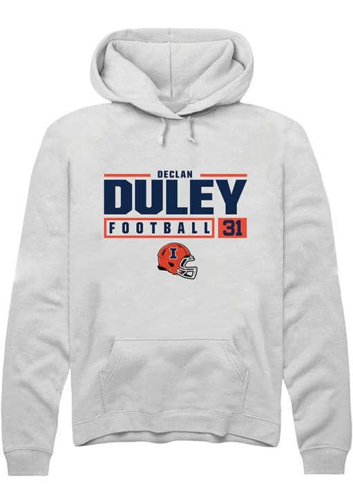 Declan Duley Rally Mens White Illinois Fighting Illini NIL Stacked Box Hooded Sweatshirt