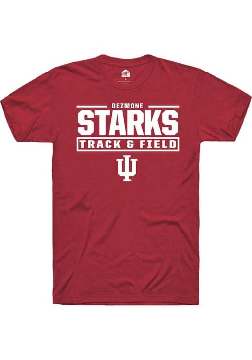 Dezmone Starks Cardinal Indiana Hoosiers NIL Stacked Box Short Sleeve T Shirt