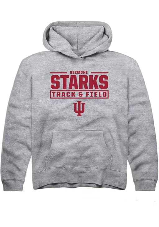 Dezmone Starks Rally Youth Grey Indiana Hoosiers NIL Stacked Box Long Sleeve Hooded Sweatshirt