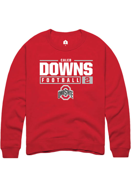Caleb Downs Rally Mens Red Ohio State Buckeyes NIL Stacked Box Crew Sweatshirt