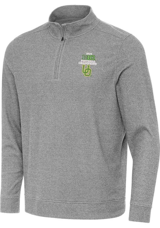 Embrace the warmth and showcase your Ducks pride with our Oregon Ducks Long Sleeve Qtr Zip Pullover. This Mens Black 2024 Big Ten Football Champions Subtle Long Sleeve Pullover offers a soft brushed heather fabric for the perfect combination of comfort and style. Elevate your everyday look with this must-have Oregon Ducks Long Sleeve Qtr Zip Pullover.