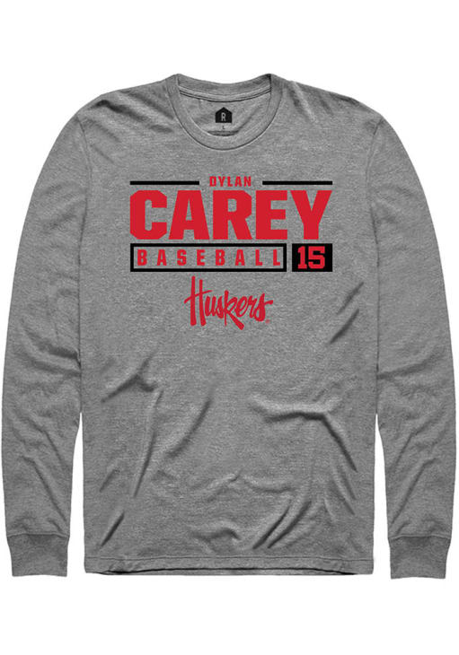 Dylan Carey Rally Mens Graphite Nebraska Cornhuskers NIL Stacked Box Tee