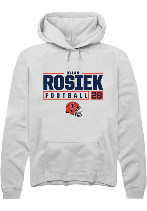 Dylan Rosiek Rally Mens White Illinois Fighting Illini NIL Stacked Box Hooded Sweatshirt