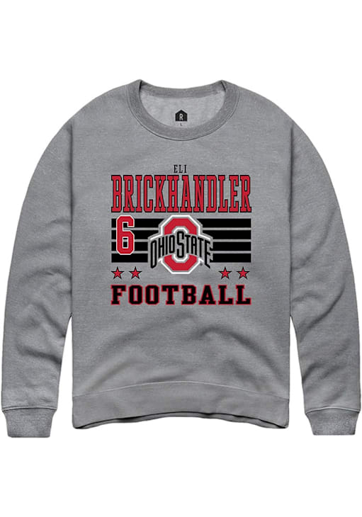 Support your Ohio State Buckeyes and favorite Eli Brickhandler in this Ohio State Buckeyes Mens Grey Football NIL Striped Player Crew. This Crew Sweatshirt features a NIL graphic, and is sure to stand out in the stadium. Perfect to wear on game day or any day!