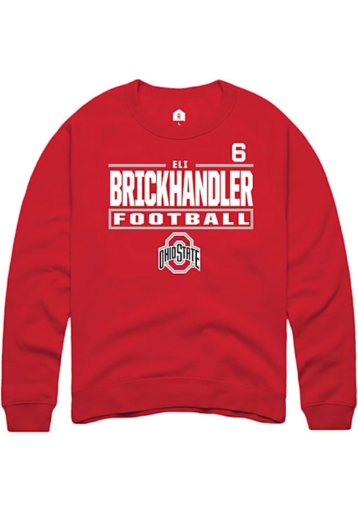 Support your Ohio State Buckeyes and favorite Eli Brickhandler in this Ohio State Buckeyes Mens Red NIL Stacked Box Player Crew. This Crew Sweatshirt features a NIL graphic, and is sure to stand out in the stadium. Perfect to wear on game day or any day!