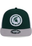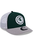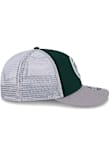 Product Details Product Details New Era 3T Circular LP 9FIFTY TruckerFront embroidered team logoTeam color crown and contrast visorTrucker mesh on side and back panelsSide New Era flagPlastic snap closureCotton/Poly BlendCurved BillLow CrownStructuredWipe clean with cloth or cleaning kitImported Officially Licensed This Green Spartans Adjustable Hat features a team logo embroidered on front.