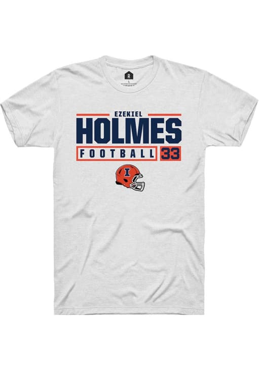 Ezekiel Holmes White Illinois Fighting Illini NIL Stacked Box Short Sleeve T Shirt
