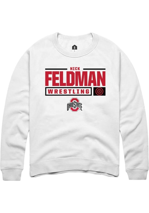 Nick Feldman Rally Mens White Ohio State Buckeyes NIL Stacked Box Crew Sweatshirt