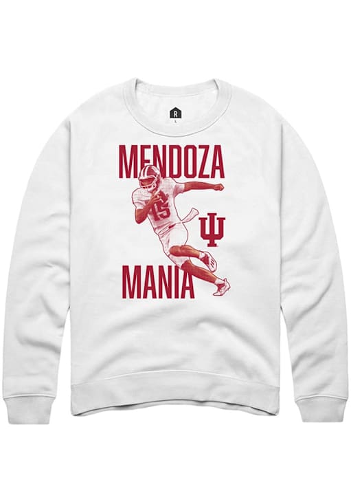 Support your Indiana Hoosiers and favorite Fernando Mendoza in this Indiana Hoosiers Mens White Mendoza Mania Player Crew. This Crew Sweatshirt features a Screen Printed Design, and is sure to stand out in the stadium. Perfect to wear on game day or any day!