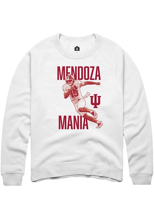 Support your Indiana Hoosiers and favorite Fernando Mendoza in this Indiana Hoosiers Mens White NIL Caricatures Mendoza Mania Player Crew. This Crew Sweatshirt features a NIL graphic, and is sure to stand out in the stadium. Perfect to wear on game day or any day!