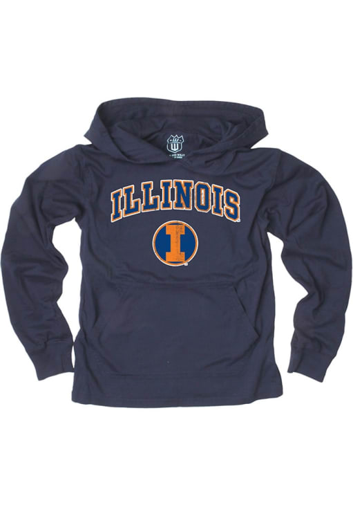 Go to gamedays in style in this Boys Navy Blue Illinois Fighting Illini Wes and Willy Jersey Vintage Arch Mascot Hooded Sweatshirt! This Fighting Illini Hoodie features a screenprint team graphic that will be sure to keep you warm and cozy.
