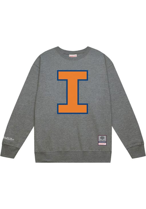 Mens Illinois Fighting Illini Grey Mitchell and Ness Down To The Wire Vintage Logo Crew Sweatshirt