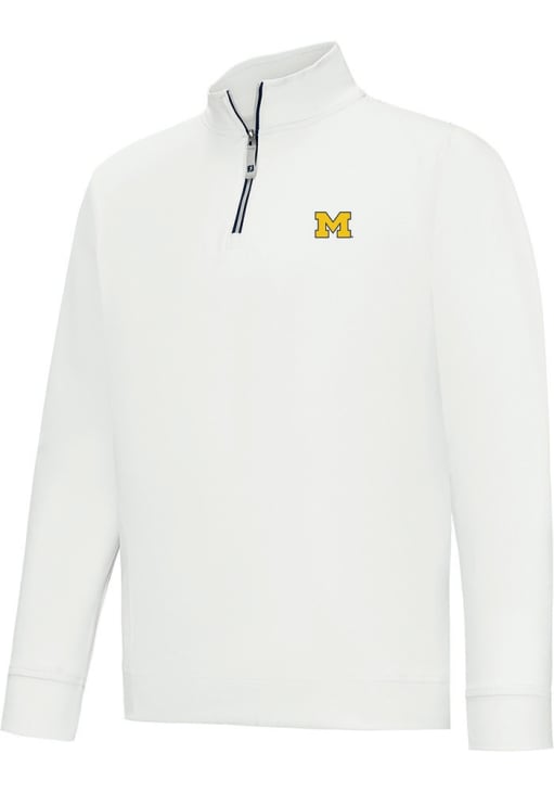 Embrace the warmth and showcase your Wolverines pride with our Michigan Wolverines Long Sleeve Qtr Zip Pullover. This Mens White Approach Long Sleeve Pullover offers a team logo on left chest for the perfect combination of comfort and style. Elevate your everyday look with this must-have Michigan Wolverines Long Sleeve Qtr Zip Pullover.
