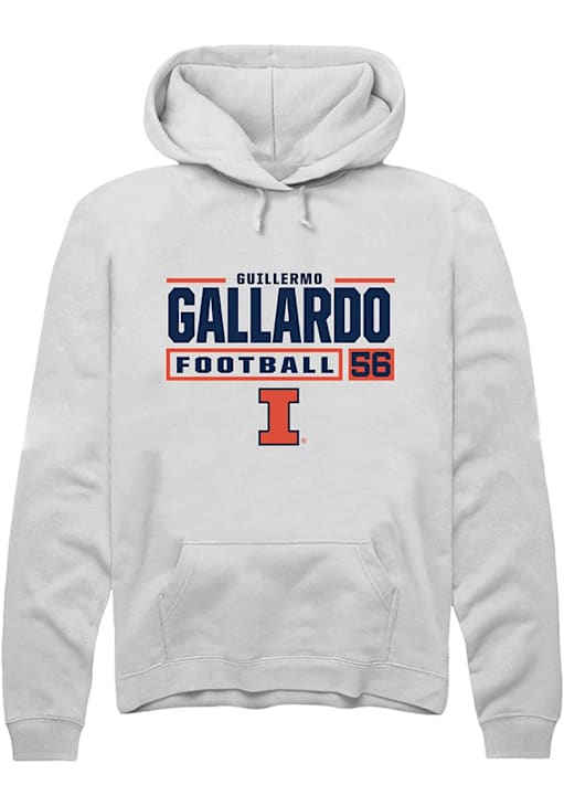 Guillermo Gallardo Rally Mens White Illinois Fighting Illini Football NIL Stacked Box Hooded Sweat..