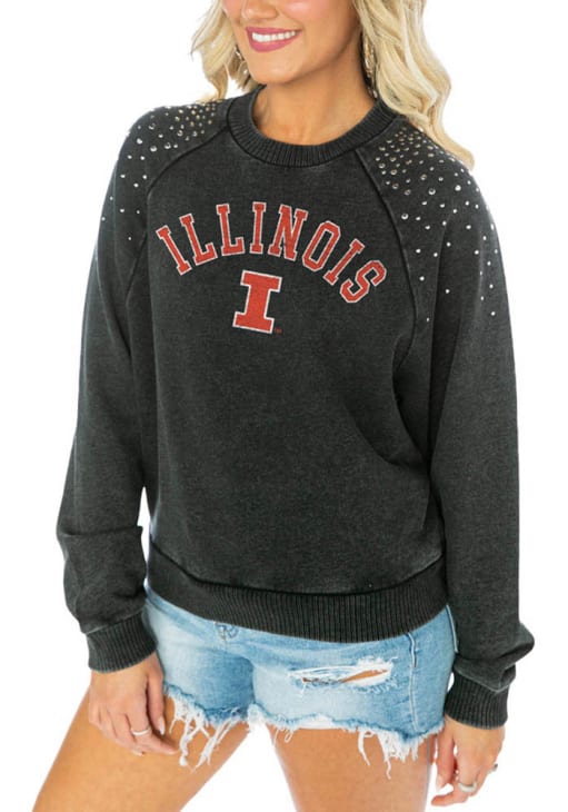 Gear up for the ultimate game day experience with this remarkable Illinois Fighting IlliniWomens Charcoal Dont Blink Studded Crew Sweatshirt! Designed with the true fan in mind, this Fighting Illini Long Sleeve Sweatshirt features a screen print team name and logo on center chest. Stay warm and comfortable with this Womens Illinois Fighting Illini Crew Sweatshirt.
