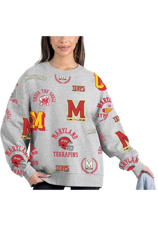 Gear up for the ultimate game day experience with this remarkable Maryland TerrapinsWomens Ash Always On Repeat Crew Sweatshirt! Designed with the true fan in mind, this Terrapins Long Sleeve Sweatshirt features a screenprint team and and team logo all over. Stay warm and comfortable with this Womens Maryland Terrapins Crew Sweatshirt.