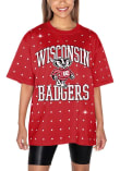 Wisconsin Badgers Red Gameday Couture In the Zone Rhinestone Short Sleeve T-Shirt