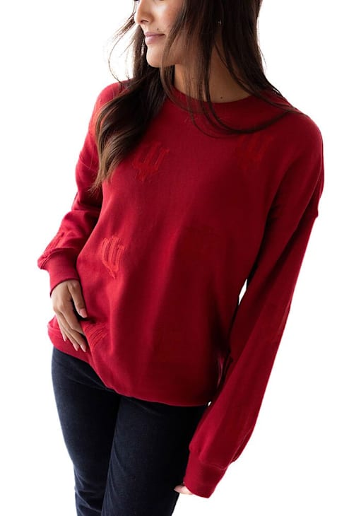 Gear up for the ultimate game day experience with this remarkable Indiana HoosiersWomens Crimson Ritter Repeat Crew Sweatshirt! Designed with the true fan in mind, this Hoosiers Long Sleeve Sweatshirt features a embroidered team logo all over. Stay warm and comfortable with this Womens Indiana Hoosiers Crew Sweatshirt.