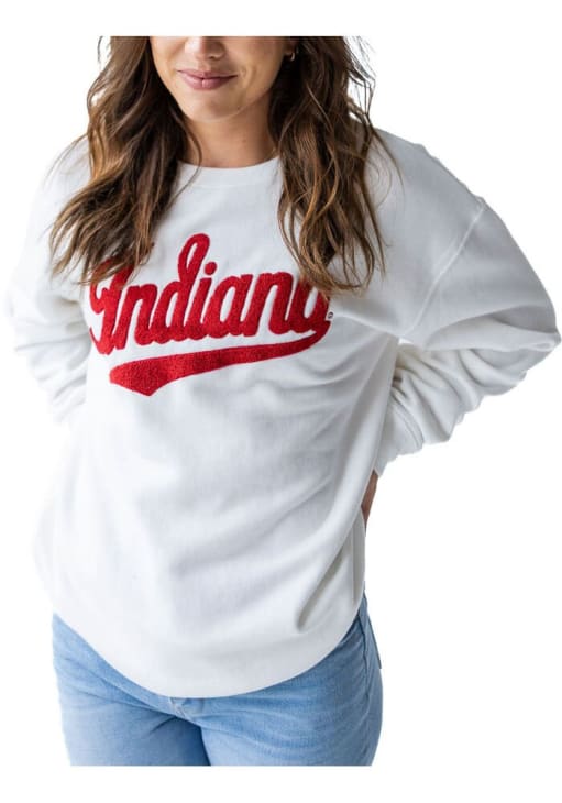 Gear up for the ultimate game day experience with this remarkable Indiana HoosiersWomens White Mascot Chenille Crew Sweatshirt! Designed with the true fan in mind, this Hoosiers Long Sleeve Sweatshirt features a chenille patch team logo on center front. Stay warm and comfortable with this Womens Indiana Hoosiers Crew Sweatshirt.