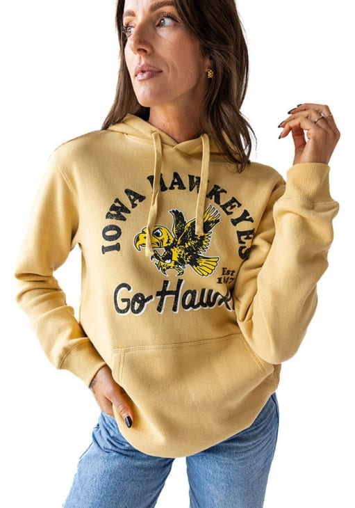 Embrace your Hawkeyes pride and showcase your team spirit with confidence in this Iowa Hawkeyes Long Sleeve Hoodie! Stay warm and stylish with the Hawkeyes Womens Gold Archival Arch Hooded Sweatshirt. Designed with screenprint team graphic on center chest, this Hawkeyes Long Sleeve Hoodie is a must-have for dedicated fans.