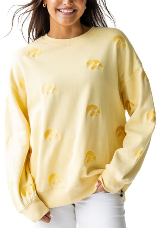 Gear up for the ultimate game day experience with this remarkable Iowa HawkeyesWomens Yellow Ritter Repeat Crew Sweatshirt! Designed with the true fan in mind, this Hawkeyes Long Sleeve Sweatshirt features a embroidered team logo all over. Stay warm and comfortable with this Womens Hawkeyes Hawkeyes Crew Sweatshirt.