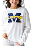 Gear up for the ultimate game day experience with this remarkable Michigan WolverinesWomens White Mascot Chenille Crew Sweatshirt! Designed with the true fan in mind, this Wolverines Long Sleeve Sweatshirt features a chenille patch team logo on center front. Stay warm and comfortable with this Womens Michigan Wolverines Crew Sweatshirt.