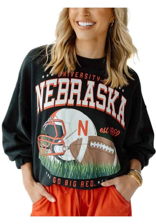 Gear up for the ultimate game day experience with this remarkable Nebraska CornhuskersWomens Malone Crew Sweatshirt! Designed with the true fan in mind, this Cornhuskers Long Sleeve Sweatshirt features a BLK NEB FTBALL AND HELMET GR. Stay warm and comfortable with this Womens Nebraska Cornhuskers Crew Sweatshirt.