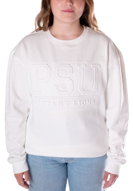 Gear up for the ultimate game day experience with this remarkable Penn State Nittany LionsWomens White College Lines Crew Sweatshirt! Designed with the true fan in mind, this Nittany Lions Long Sleeve Sweatshirt features a embossed team name on center chest. Stay warm and comfortable with this Womens Penn State Nittany Lions Crew Sweatshirt.