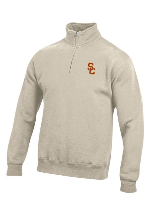 Embrace the warmth and showcase your Trojans pride with our USC Trojans Long Sleeve Qtr Zip Pullover. This Mens Oatmeal Big Cotton Long Sleeve Pullover offers a embroidered graphics for the perfect combination of comfort and style. Elevate your everyday look with this must-have USC Trojans Long Sleeve Qtr Zip Pullover.