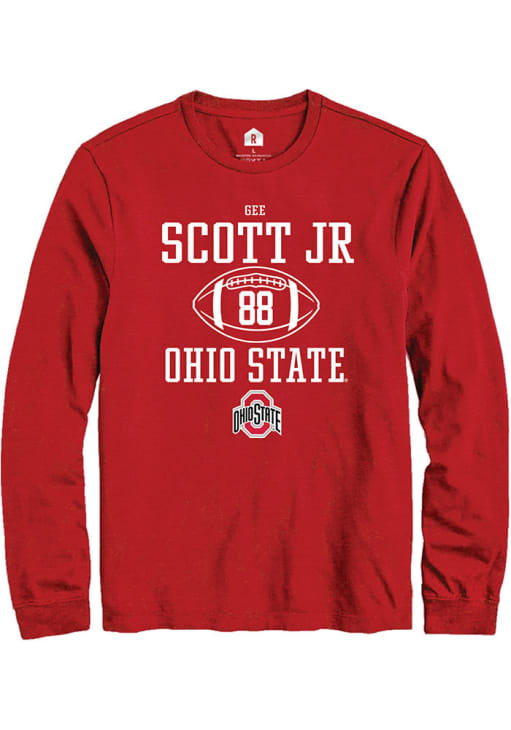 Show your Ohio State Buckeyes spirit in this The Ohio State University Red T Shirt! This The Ohio State University NIL Sport Icon Long Sleeve T Shirt makes a great layer for cooler nights cheering on the Buckeyes. Featuring a custom graphic with player's name and number, this Ohio State Buckeyes Long Sleeve Tee is an essential addition for every fan. Go Buckeyes!