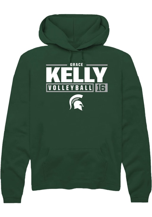 Grace Kelly Rally Mens Green Michigan State Spartans NIL Stacked Box Hooded Sweatshirt