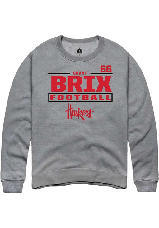 Support your Nebraska Cornhuskers and favorite Grant Brix in this Nebraska Cornhuskers Mens Graphite Football NIL Stacked Box Player Crew. This Crew Sweatshirt features a NIL graphic, and is sure to stand out in the stadium. Perfect to wear on game day or any day!