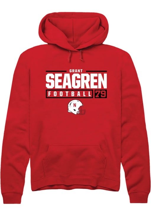 Grant Seagren Rally Mens Red Nebraska Cornhuskers NIL Stacked Box Hooded Sweatshirt