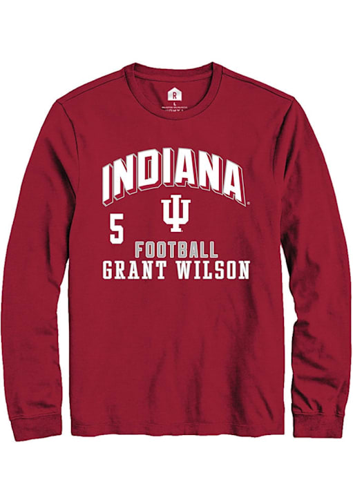 Embrace the spirit of your favorite player in this Indiana Hoosiers Crimson Football NIL Arch Logo Grant Wilson Long Sleeve Player Tee! This Player T Shirt features a NIL graphic, so everyone will know you cheer for Indiana, Grant Wilson! This is the perfect Hoosiers Player Tee for game days. Indiana, Our Indiana!