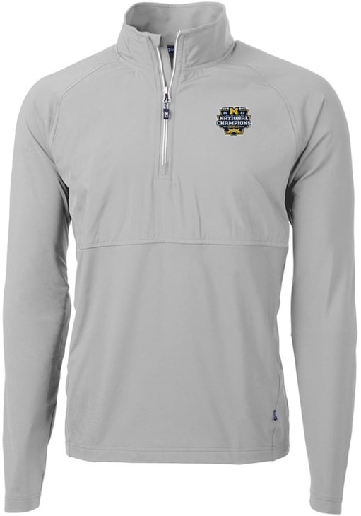 Embrace the warmth and showcase your Wolverines pride with our Michigan Wolverines Long Sleeve Qtr Zip Pullover. This Mens Grey 2023 College Football National Champions Adapt Eco Hybrid Long Sleeve Pullover offers a wind resistant recycled shell for the perfect combination of comfort and style. Elevate your everyday look with this must-have Michigan Wolverines Long Sleeve Qtr Zip Pullover.