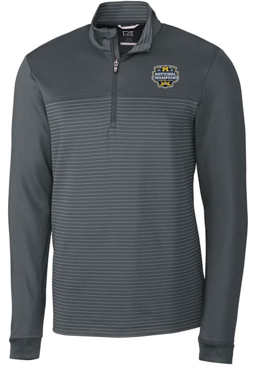 Embrace the warmth and showcase your Wolverines pride with our Michigan Wolverines Long Sleeve Qtr Zip Pullover. This Mens Grey 2023 College Football National Champions Traverse Stripe Long Sleeve Pullover offers a stripe pattern for the perfect combination of comfort and style. Elevate your everyday look with this must-have Michigan Wolverines Long Sleeve Qtr Zip Pullover.