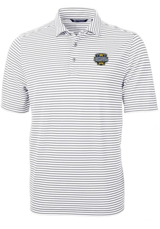 Enhance your professional style with this striking Mens Grey Short Sleeve Polo Shirt! Showcase your team pride among colleagues with this exceptional Michigan Grey 2023 College Football National Champions Virtue Eco Pique Stripe Short Sleeve Polo. Stand out and make a statement in this Michigan Wolverines Short Sleeve Polo, featuring a stripe pattern that adds a touch of distinction to your look.