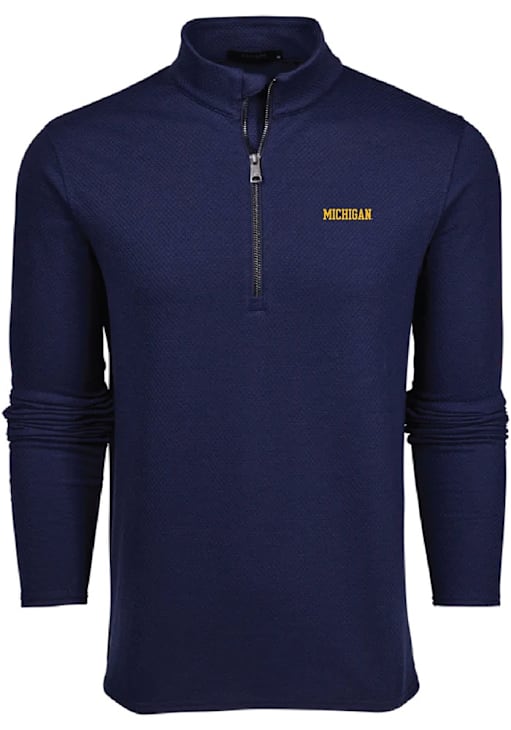 Embrace the warmth and showcase your Wolverines pride with our Michigan Wolverines Long Sleeve Qtr Zip Pullover. This Mens Blue Troy Long Sleeve Pullover offers a team logo on left chest for the perfect combination of comfort and style. Elevate your everyday look with this must-have Michigan Wolverines Long Sleeve Qtr Zip Pullover.